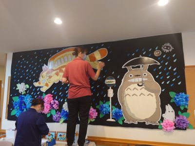 - ☔が続いてましたが、今日は久しぶりに日が差してますね🙂どんぐりの利用者さんは毎日お元気で過ごしています。今月の壁画作りです…N